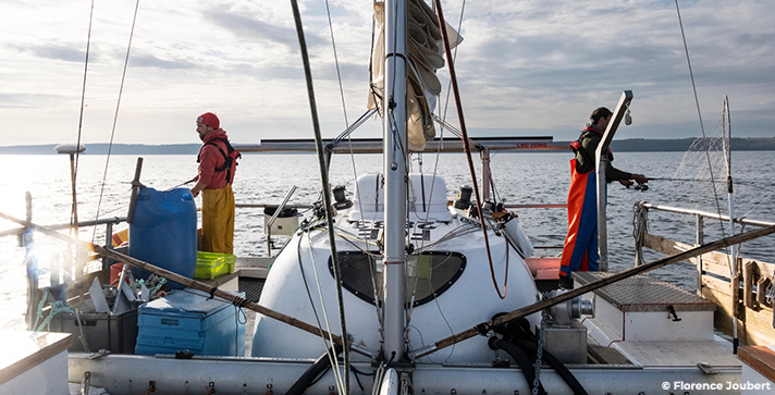 Skravik currently operates two working sailing vessels, designed to sail in Brittany – from the Bay of Brest to the Iroise Sea and beyond – and to meet a variety of needs. The sailing vessel SKRAVIK carries out low-impact, small-scale coastal fishing, with sales through short supply chains. The cooperative also undertakes scientific missions of short or long duration, aboard the MORSKOUL, for oceanographic research, with the crew handling logistics and providing technical support to the researchers. This hybrid approach allows the cooperative to maintain its roots in the fishing industry whilst making a direct contribution to our understanding of the marine environment.